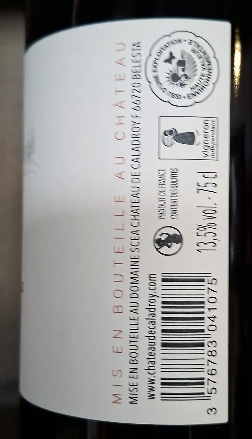 Le château Caladroy est niché à 354 m d’altitude. La superficie est de 560 hectares dont 120 de vignes. 7 hectares d’oliviers viennent compléter ce lieu d’exception, deux variétés principales la Picholine et la Sigoise. Situé dans le Fenouillèdes, les vignes ont été plantées entre 260 et 320 mètres d’altitude. Sur des coteaux de schistes. Les sols argileux se sont développés sur les schistes noirs et les gneiss du massif de L’Agly. Cette large mosaïque de terroirs nous permet de produire, des vins avec beaucoup de personnalité et de fraicheur.